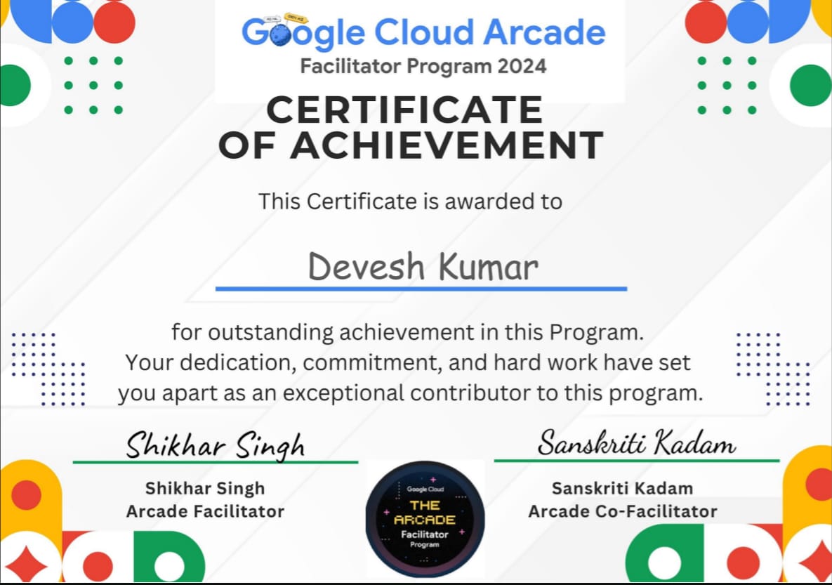 Click to view certificateGoogle Cloud Arcade Facilitator Program 2024